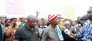 Speaking during the protest the traditional ruler said the butchers have refused to pay royalties to the community for donating their land to them over the years.